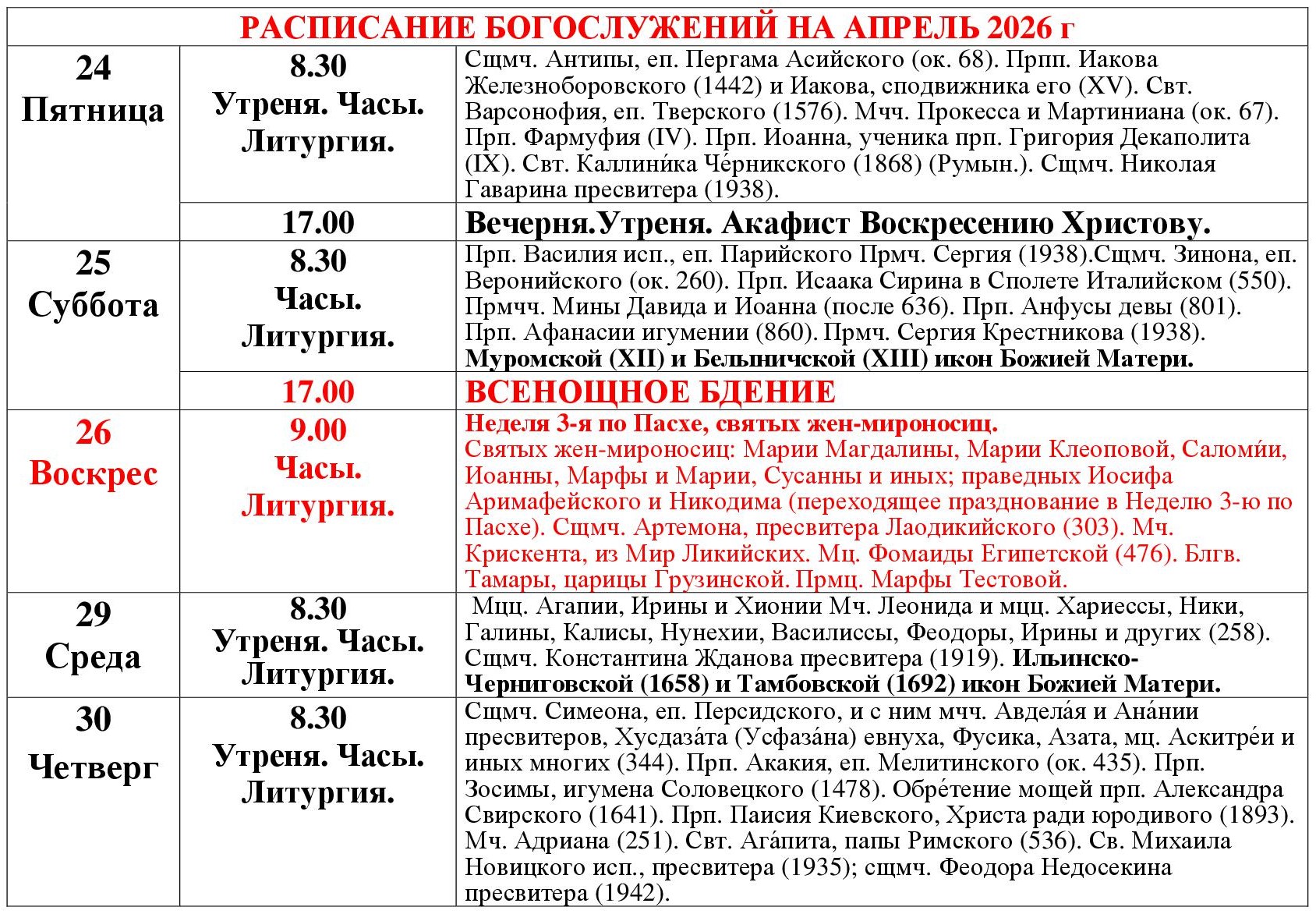 Дорогие братья и сестры! Если нет расписания или вы заметили ошибку, напишите, пожалуйста, в комментарии. Это самый быстрый способ исправить.