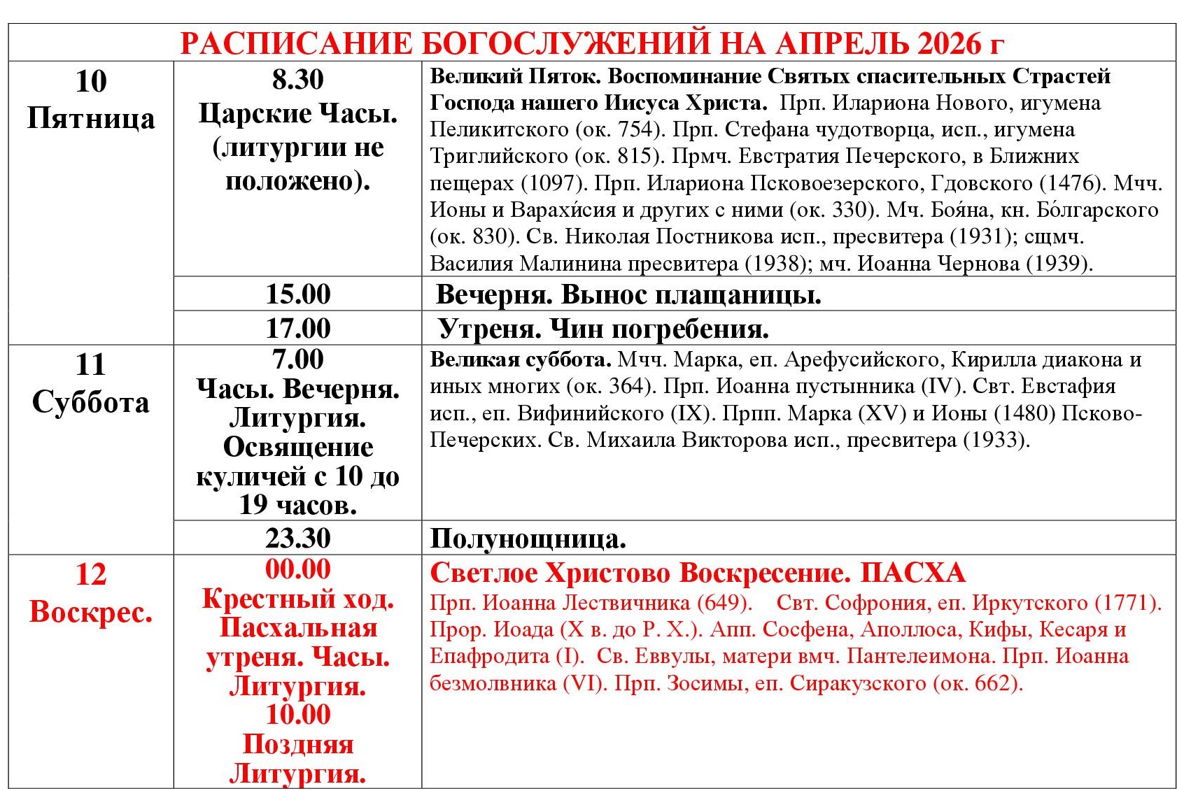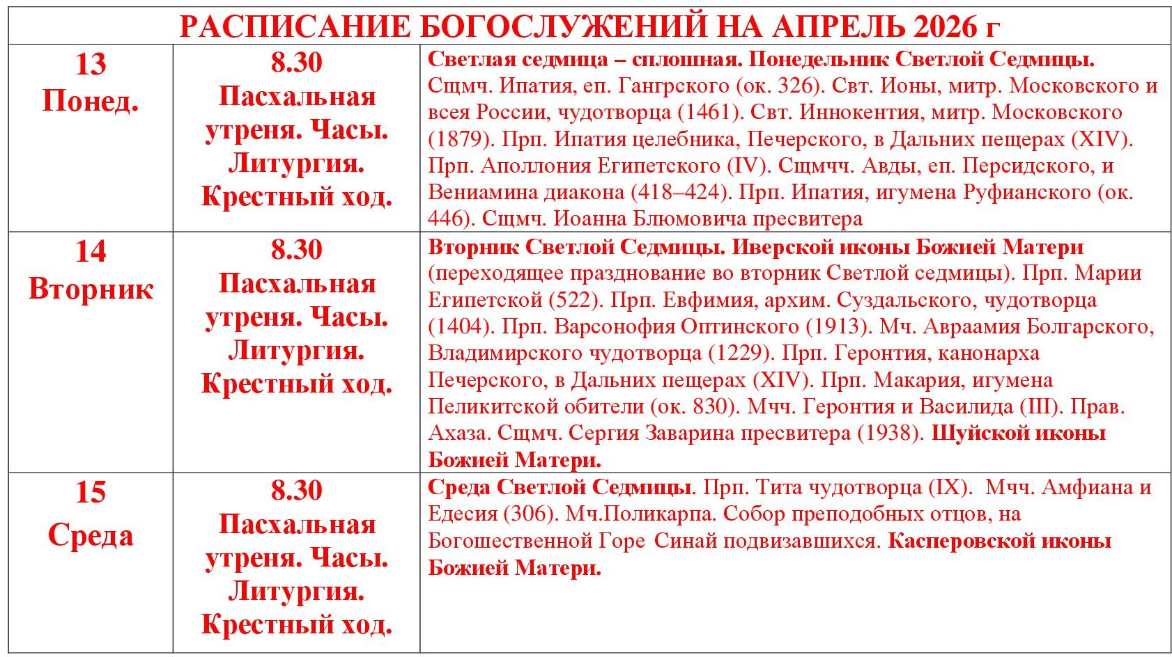 Дорогие братья и сестры! Если нет расписания или вы заметили ошибку, напишите, пожалуйста, в комментарии. Это самый быстрый способ исправить.